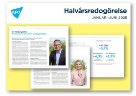 Under första halvåret 2025 uppgick totalavkastningen för AP7, med majoriteten av spararna i förvalet AP7 Såfa, till -3,7 procent. Halvåret har präglats av turbulenta börser, fallande räntor och starkare krona. Börsoron och kronförstärkningen har missgynnat AP7 Aktiefond medan AP7 Räntefond gynnats av de fallande räntorna. – Första halvåret har präglats av turbulenta marknader i spåren av…